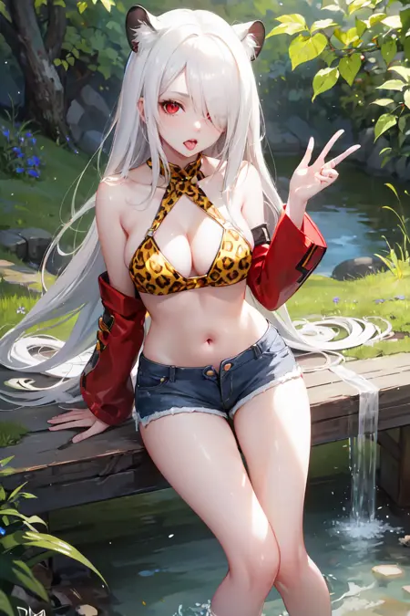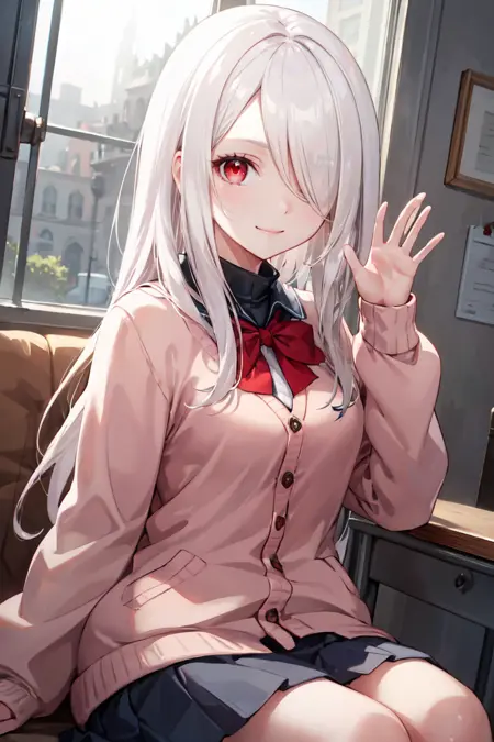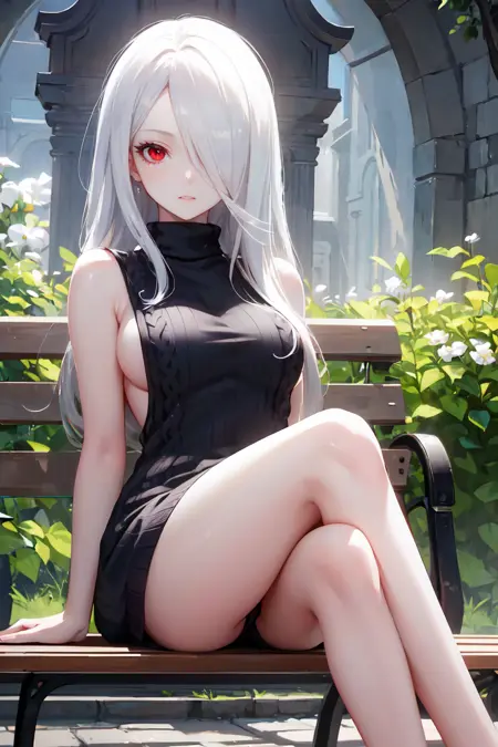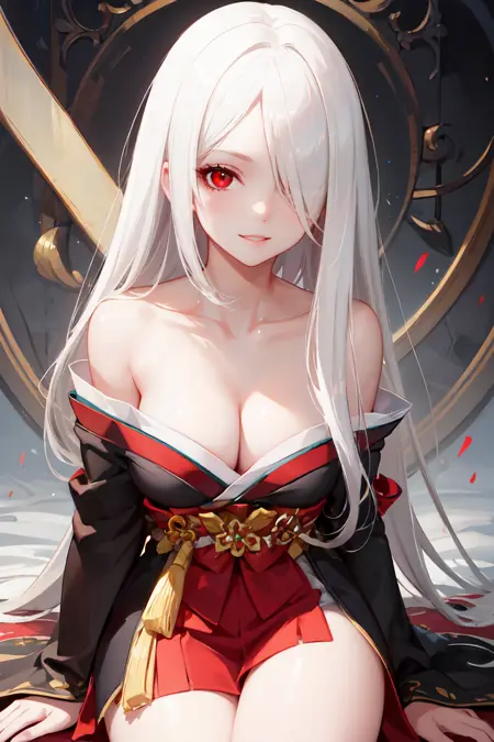 Apperance: argenta, hair over one eye, red eyes, long hair.