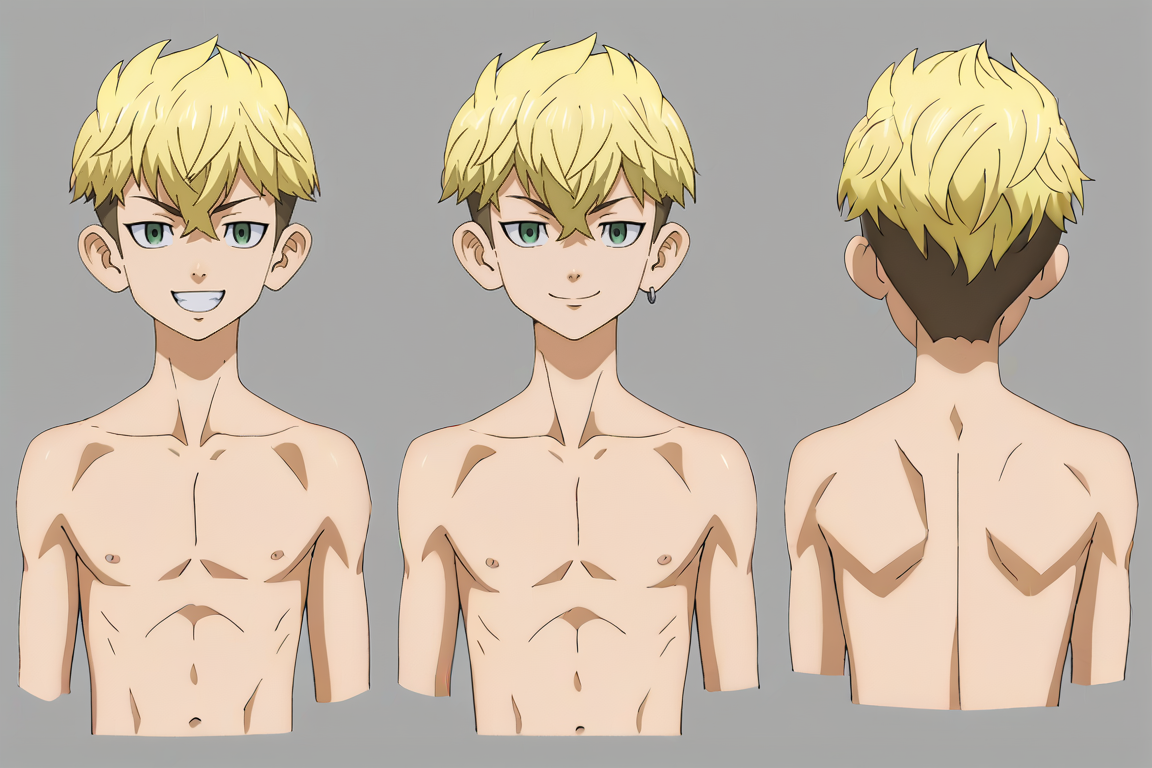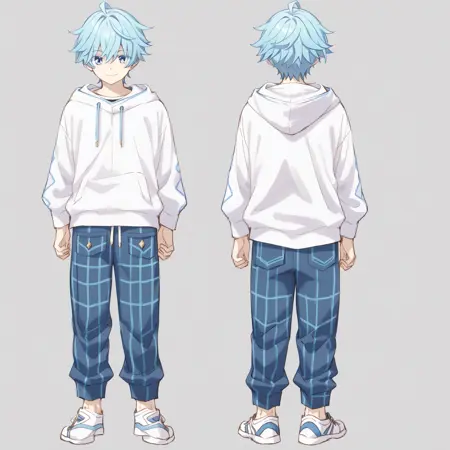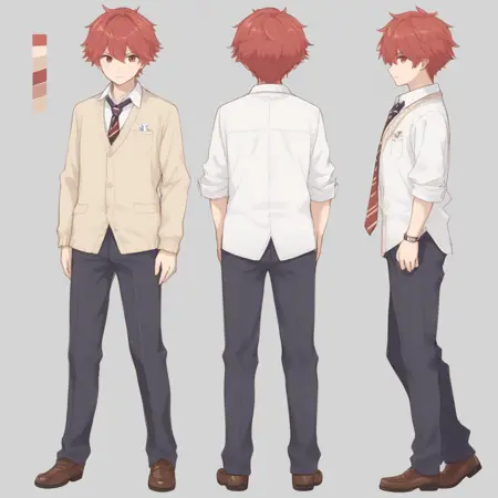 トリガーワード:リファレンスシート、シンプルな背景、複数のビュー、フルボディ、正面ビュー、背面、横からのビュー