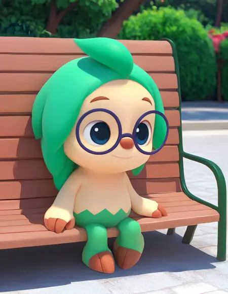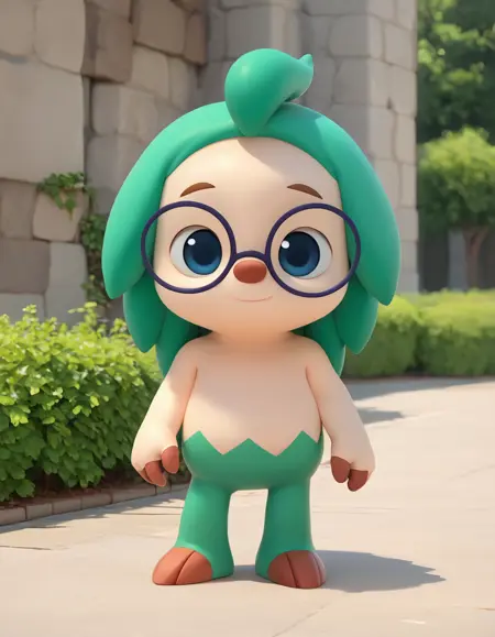 hogi, glasses, blue eyes, green hair