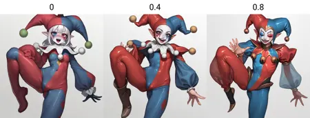 可选:小丑帽、蓬松袖子、紧身衣、尖头鞋、面部彩绘