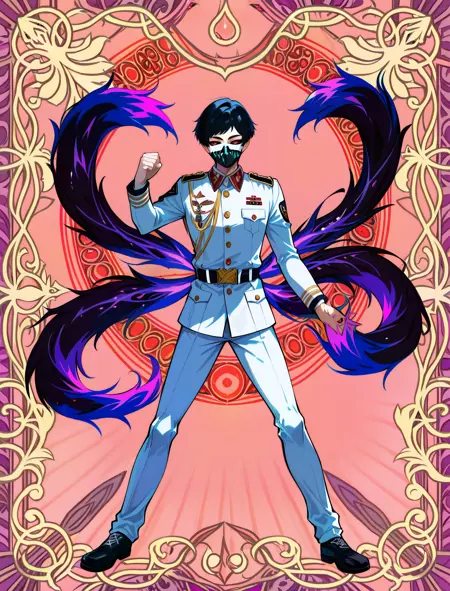 'gradient kagune' および 'multicolored kagune' は、'blue kagune'、'red kagune' のようなkaguneの色と組み合わせて使用してください。