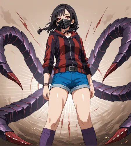 'gradient kagune' 和 'multicolored kagune' 应与 kagune 颜色结合,例如 'blue kagune, red kagune'。