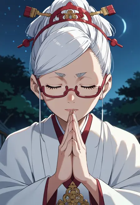Lora-scale: 0.7-0.9トリガー単語: ayase seiko、白髪、眼鏡、赤枠メガネ、セミリムレス眼鏡、アンダーリム眼鏡、茶色の目