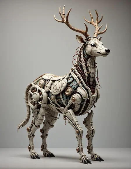 Bio Mecha — 生物学とロボット工学が有機的・工業的な複雑さで融合する世界。このLoRAは、肉と鋼鉄の不思議なバランスを持つバイオメカニカルな存在を具現化します。歯車、配線、金属表面の緻密なテクスチャーが、親しみやすくかつ未来主義的なフォルムを包み込んでいます。人間、動物、機械の境界が曖昧になるプロジェクトに最適です。