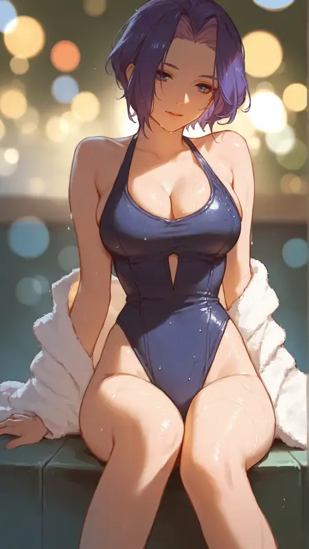 예시 프롬프트: "miang_hawwa, an anime girl, 1girl, solo, short hair, simple background, white background, purple eyes, upper body, purple hair, hair over one eye, lips "
