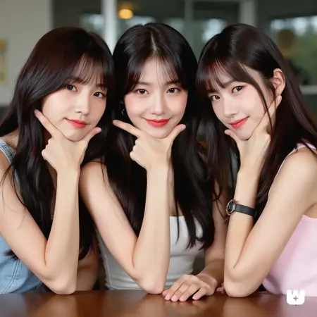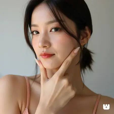 한국의 유명한 스타들이 사용하는 꽃 피는 얼굴 애교 포즈의 한 손 버전.