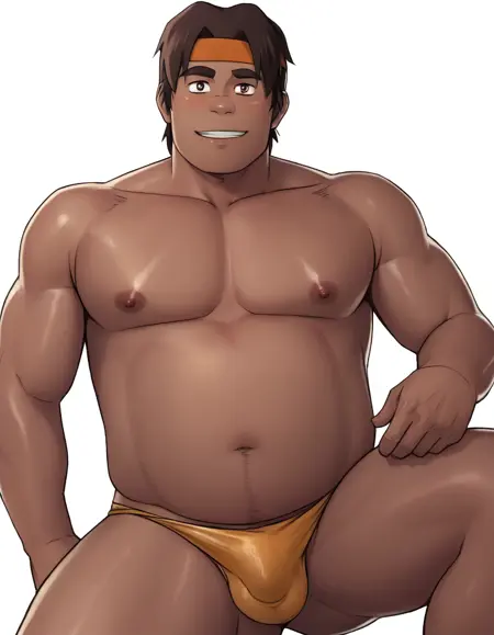 hunkgarretpxl, hunk, hunk voltron, 棕色皮肤, 棕色头发, 棕色眼睛,(橙色发带), 肌肉丰满, bara,