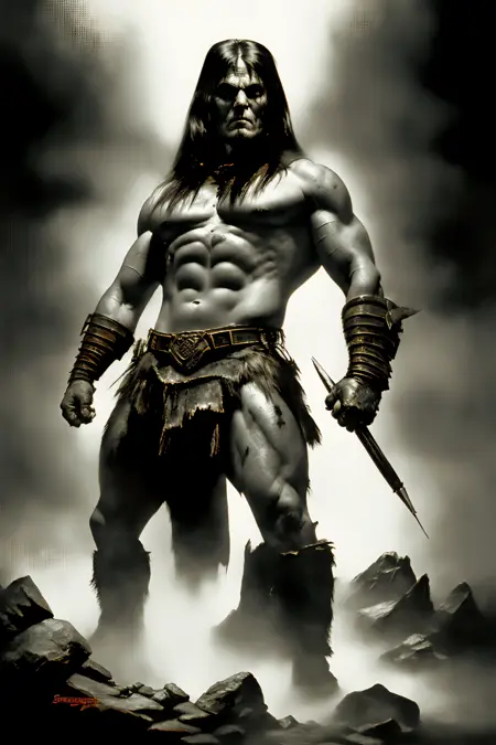 • ((アフロヘア、ざらざらとした髪、スケッチ、線画、コメディー、剣を握っている、武器を握っている))