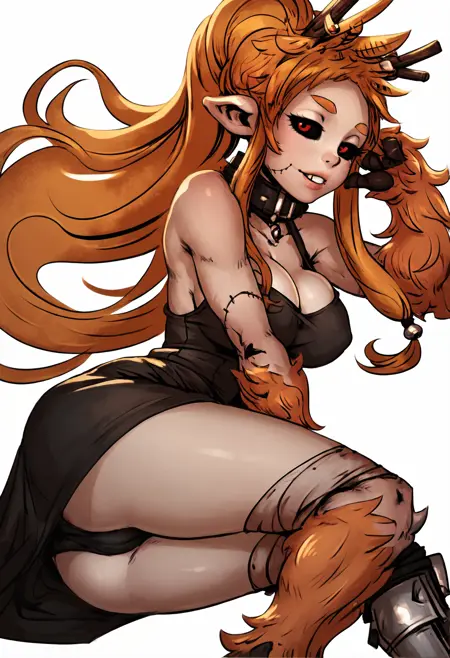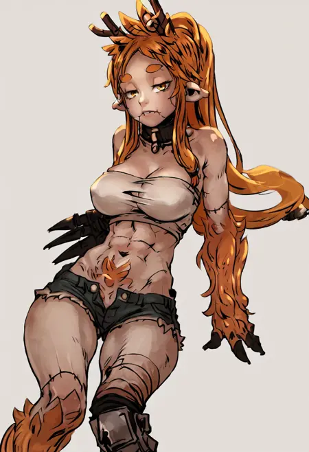 我一直以来都很喜欢这个角色,充满个性,出自《最黑暗的地牢》中的小鹿。原角色来自 muscarine,而经过调整的版本来自这个 模组。基本上,这是一个 模组 对另一个 模组 的二次修改。它与卡通风格的检查点配合得很好,但对写实风格的检查点效果不佳。它在 0.7 到 1.0 的强度下都可用;若在 1.0 强度下不想看到义体,可以将强度调至 0.7 并搭配写实检查点使用,但需要重新生成才能获得义体,有时能得到好结果,有时则不然。