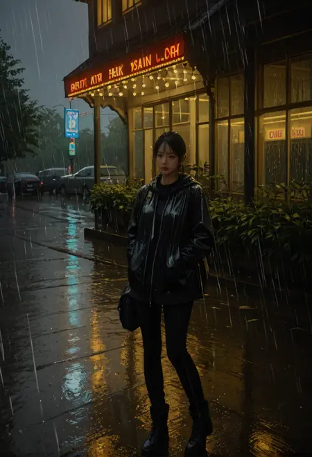 这次不仅仅是重新开始背景训练,还加入了雨天LoRA的概念。简而言之,满意度比之前的训练更好。