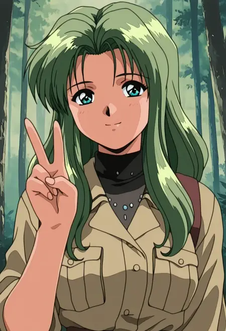 Jinguji Narumi, green eyes, blue eyes, green hair, long hair,