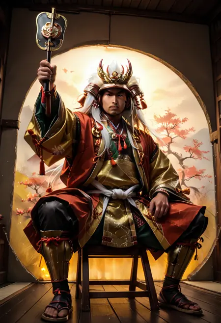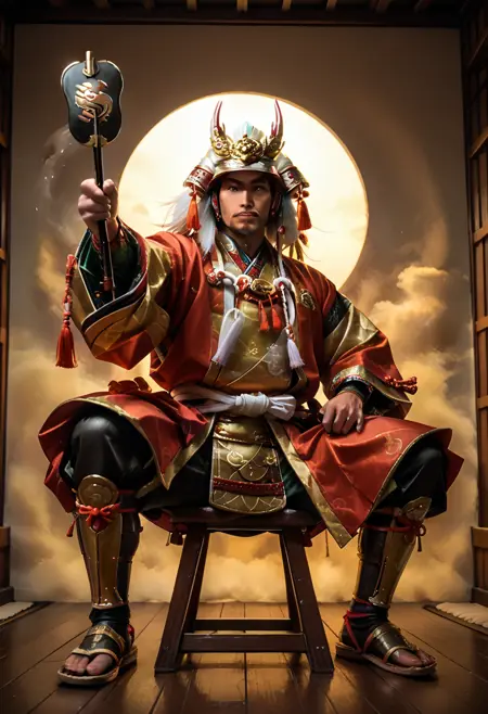 "shingen,japanese samurai,japanese armor,helmet"은 군배라고 하면 떠오르는 이 사람, 다케다 신겐처럼 보이는 인물이 나타난다.