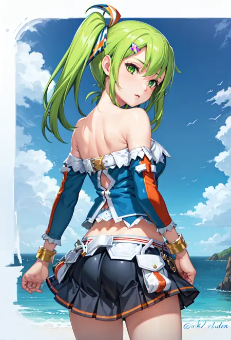 外观标签:绿色眼睛,绿色头发,长发,一侧束起,侧马尾