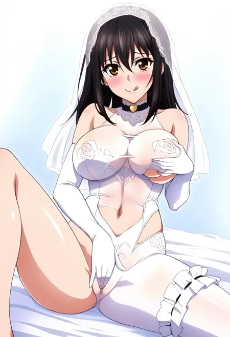 흰색 레오타드, 흰색 장갑, 팔꿈치 장갑, 허벅지 긴 양말, 흰색 허벅지 긴 양말, 흰색 팬티스타킹, 브라이덜 가터,