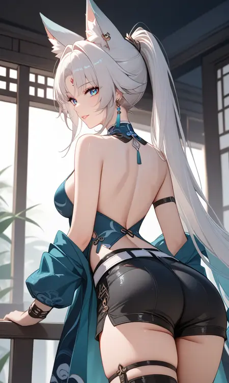 タグ:tj_feixiao、動物の耳、ロングヘア、ポニーテール、マルチカラーの髪、白髪、赤いアイライナー、アクアアイズ、輪状の目、額のマーク、耳垂れ、タッセルヘアオーナメント、タッセルイヤリング