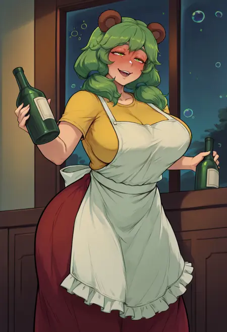 Main Prompts: NSCarolineStardewIllu, green hair, twintails, green eyes, mature female
