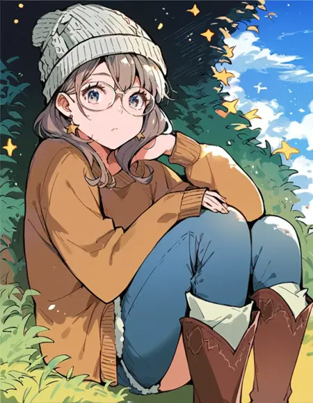 描述: 眼镜、灰褐色头发、蓝灰色眼睛、星星耳环