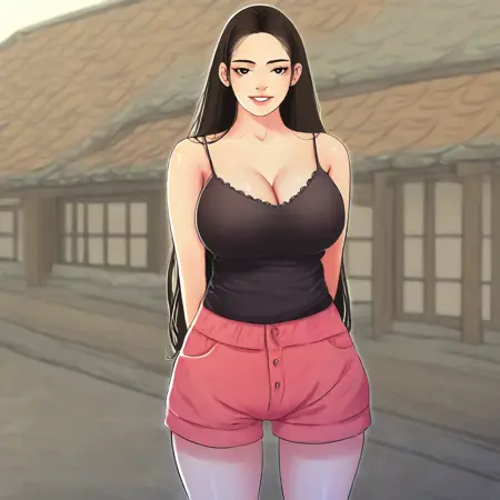 다보정: da_bo-jeong, 날카로운 짙은 갈색 눈, 아름다운 검은 머리카락, 아름다운 긴 머리카락, 큼직하고 헝클어진 가슴, (코에 점 1개)
