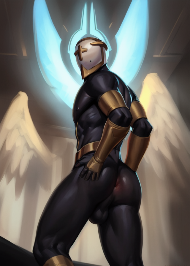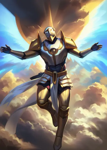 gabriel, solo, male, helmet, armor, spear, holding weapon, wings, floating, ...