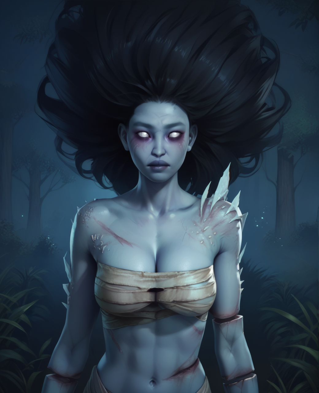 TheSpirit, white eyes, black hair, - floating hair, or large hair, or long hair, - lips, or big lips,