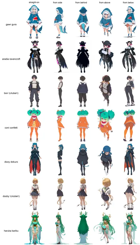 すべてのVTuberが同等のレベルで認識されているわけではなく、一部のキャラクターは追加のタグが必要だったり、私のテストではうまく動作しないこともあります。タグ付けと使用法に関するキャラクターの完全な一覧は以下で確認できます:https://huggingface.co/Jyrrata/LHC_XL/blob/main/alpha_v05/vtubers_valpha05.txt 。また、すべてのVTuber(ComfyUIメタデータを含む)のサンプル画像のアルバムは以下に準備されています:https://catbox.moe/c/pjfwt1 。