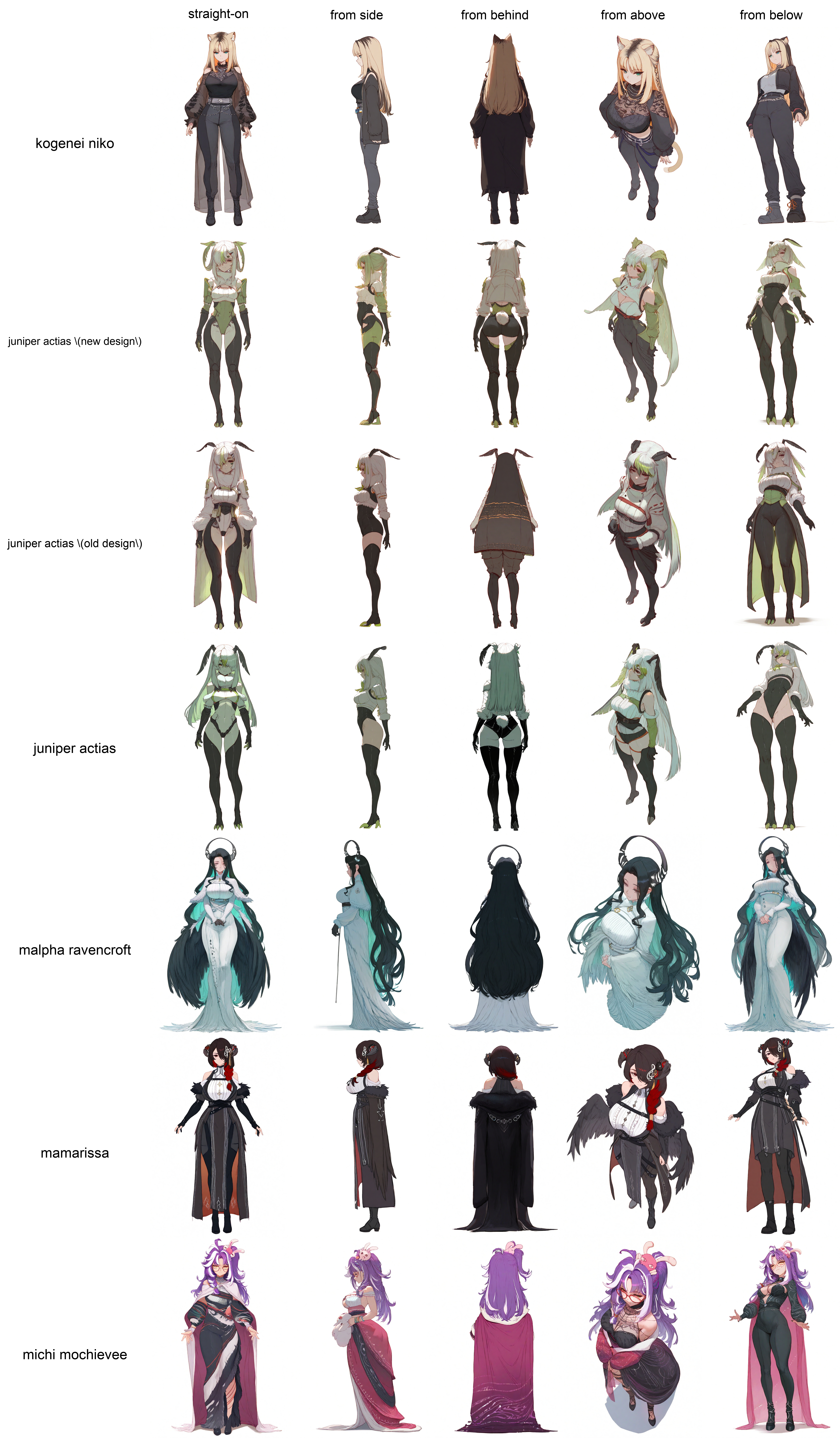 新しいVTuberの追加に加え、既存のいくつかのデータセットも再構築しました。特にjuna unagiとjuniper actiasが対象です。Juniperには、新しいデザインと古いデザインの2つの新しいタグが追加され、モデルを2つの明確な段階に分ける試みを行いました。これは実験的な取り組みであり、今後のバージョンで継続される保証はありません。