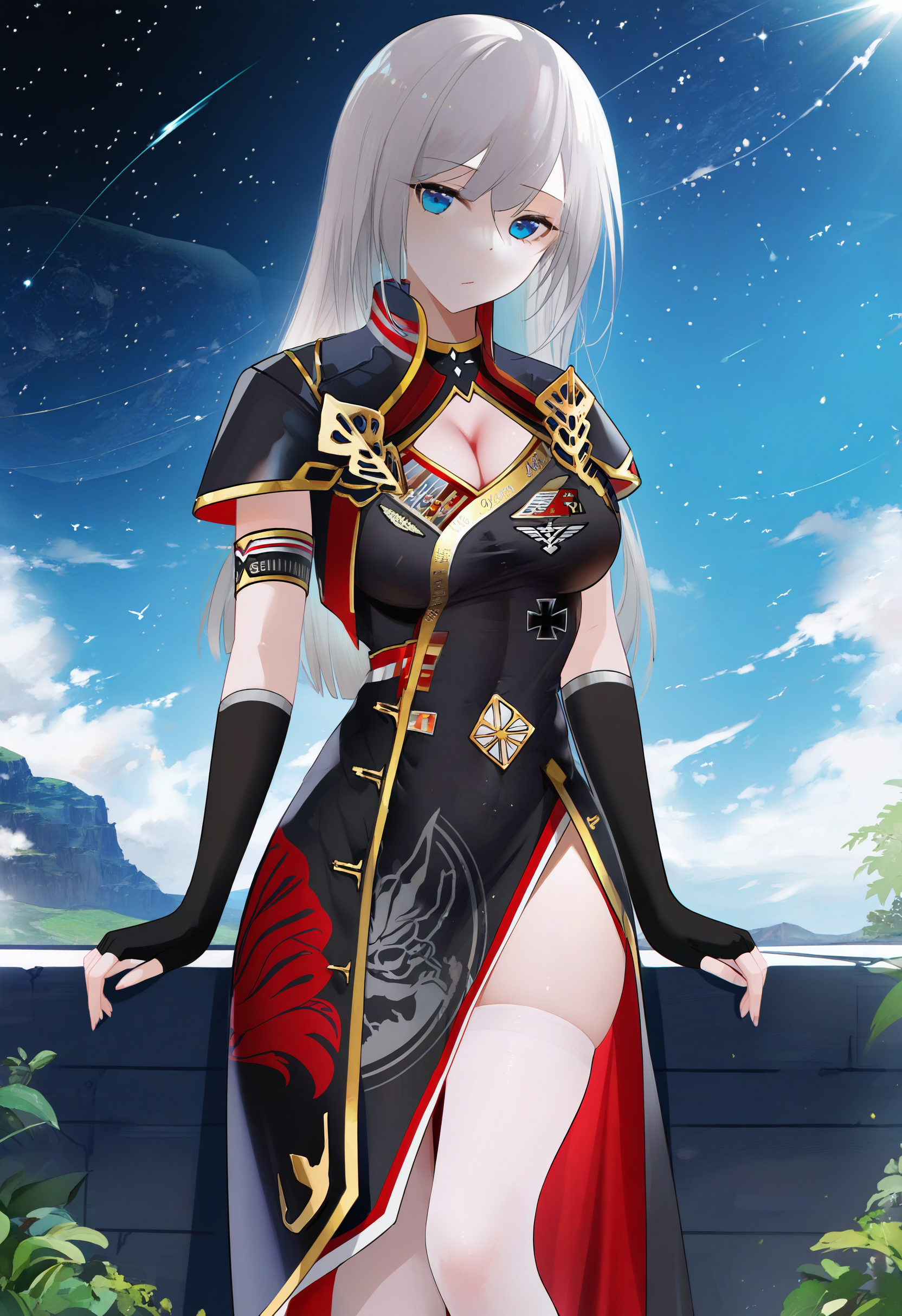 | Trained Words | masterpiece,best quality,newest,year 2025,year 2024,year 2023,highres,absurdres, incredibly absurdres, Copied! gray goo (stellaris),stellaris (game),Copied! 1girl, blue eyes, long hair,grey hair,hair between eyes,Copied! white thighhighs, ss insignia, swastika, elbow gloves, black capelet,fingerless gloves, black dress, side slit, iron cross, military, military uniform, black gloves, cleavage cutout, heart cutout, armband, head tilt, commonwealth of man, china dress, medal, ribbon bar, square, floral print, red print, dragon print, gold trim, white print, print dressCopied! |
