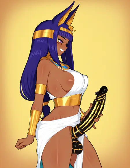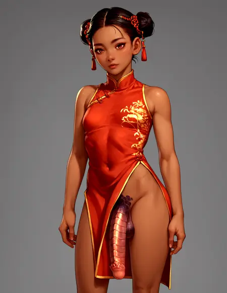 dr4g0ncock,dark_skin, futanari, small_breasts, china_dress, scalecock, flaccid