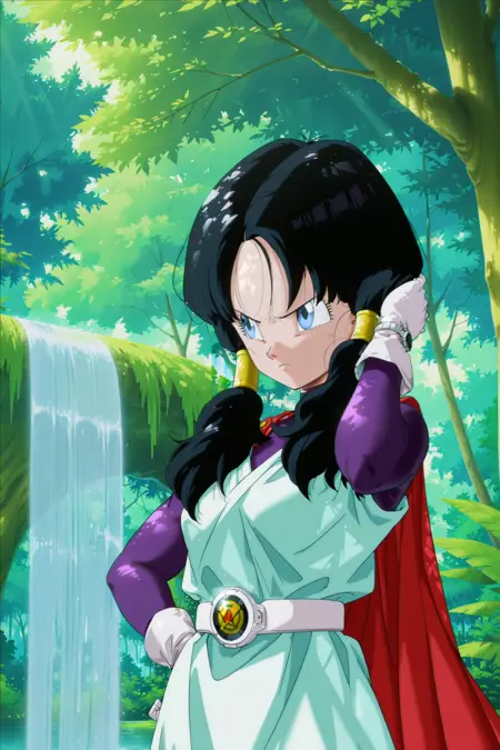 维黛尔,《龙珠GT》,长发,蓝眼睛,黑发,编发马尾,头发向后束起,
