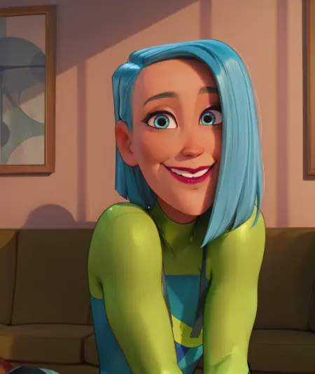 녹색 소매와 검은 파란 레깅스와 같은 프롬프트는 바디수트에 추가될 수 있음(???)