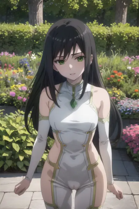 anime,best quality,cowboy shots,dynamic angle,1girl,solo,black hair,green eyes,beautiful detailed face,long hair,