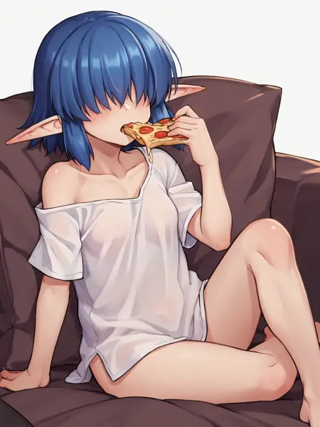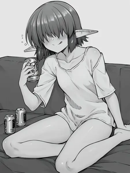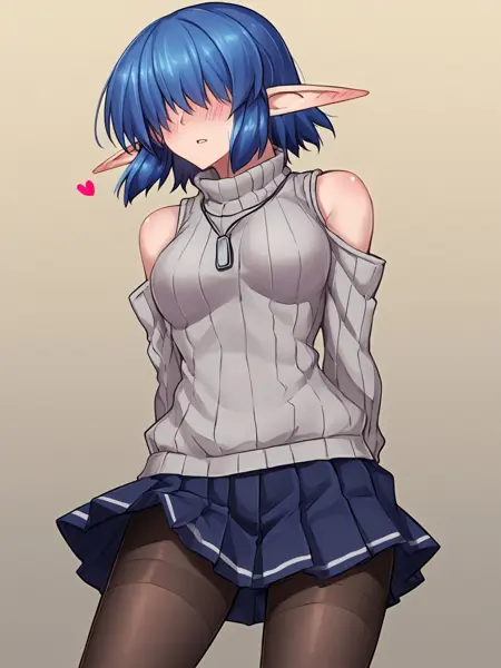 川上さんの同人作品『メカクレ・エルフさんのいる生活』に登場するキャラクター。主人公の妻(?)または同居人で、ゲームをするエルフ。髪が常に目を覆っている。