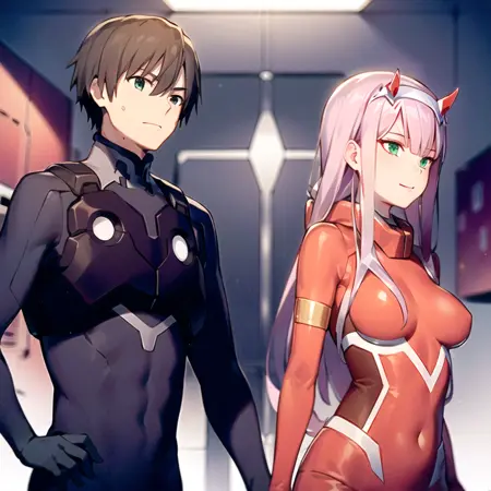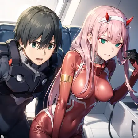 如果不使用这些(负向嵌入),图像可能会出现一些瑕疵,因为很难找到 Hiro 穿着插头服的优秀单人图像。但此模型在生成 Zero Two 和 Hiro 同框,或仅生成 Zero Two 时表现优异 :DD