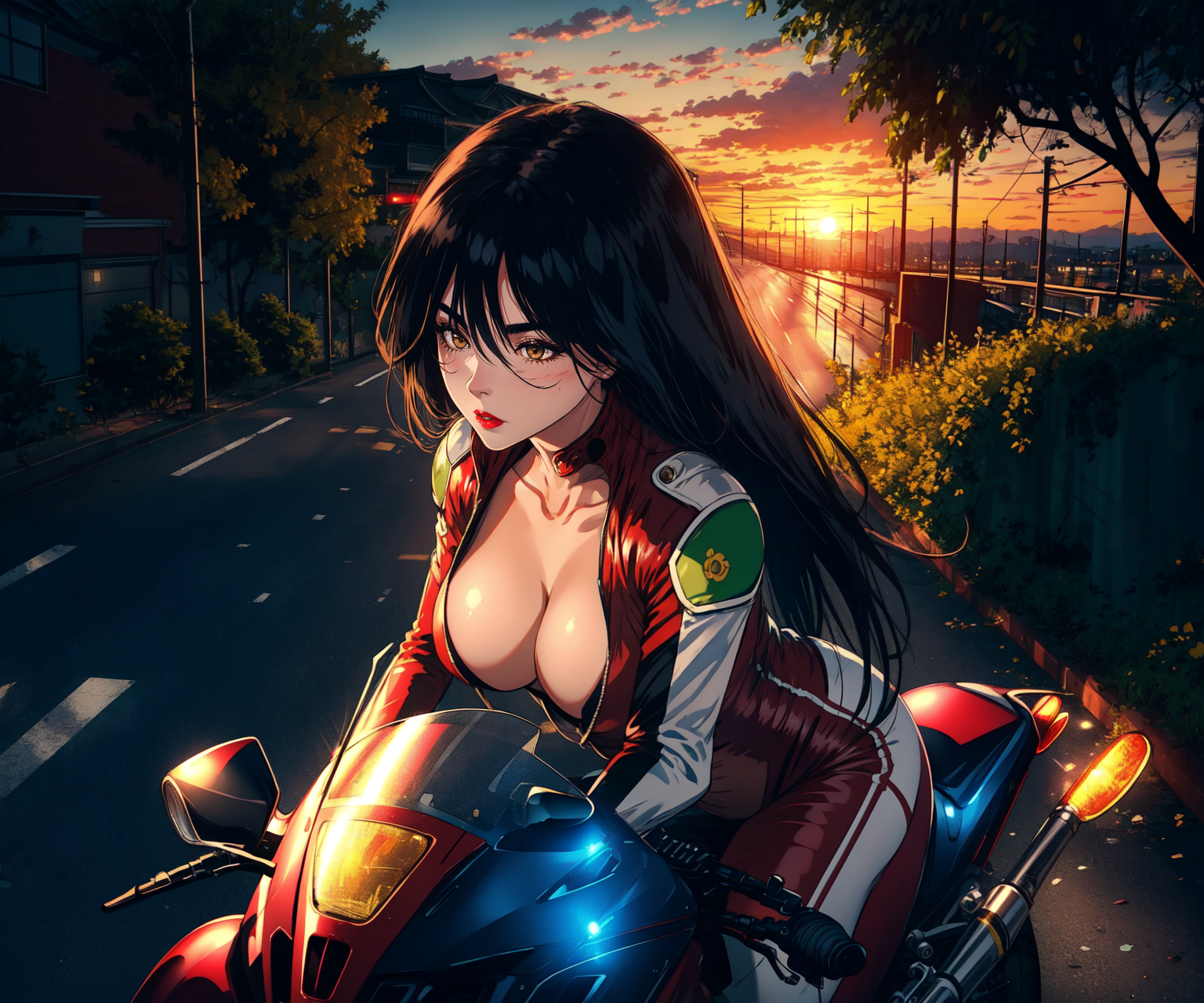 红色紧身衣,机车服,