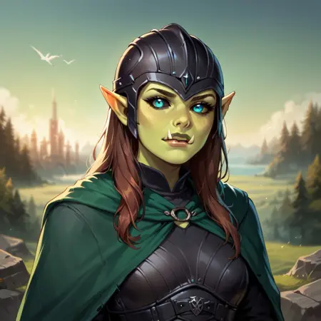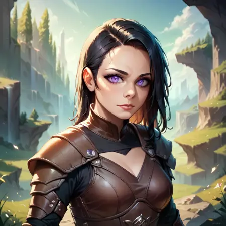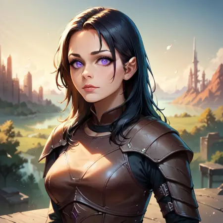 示例提示:1girl, 蓝眼睛, 棕发, 黑色 甲胄, 皮甲, 黑色 皮肩甲, 蓝色 皮护臂, 白色 毛皮镶边,