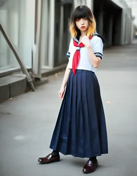 ※昭和っぽいスケバン目指しましたが...結局、ロンスカのセーラー服LORAになってしまったような...髪型や化粧で雰囲気つくってもらえればと...