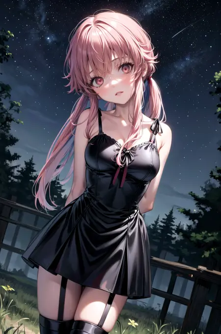 검은 드레스 - gasai yuno, black dress, sleeveless, garter straps, black thighhighs, thigh boots