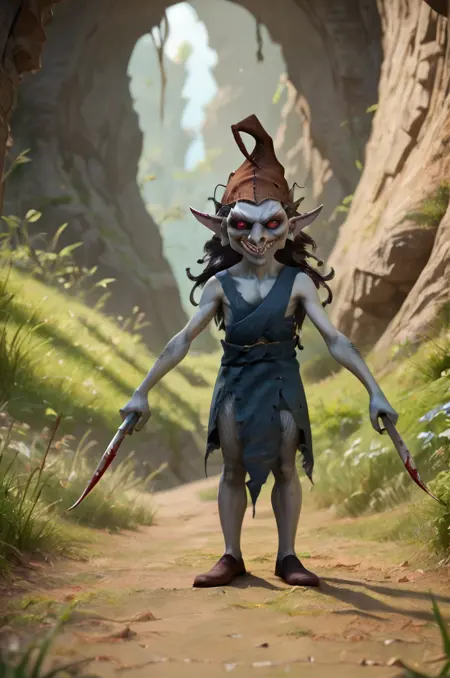 추가 프롬프트: daemon, 뾰족한 귀, 뾰족한 코, 회색 피부