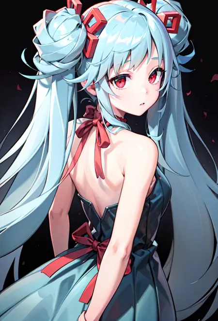 Maud拥有淡蓝色的头发,扎成两个带有红色饰物的发圈,并垂下双马尾。她的眼睛呈浅红色,身穿一件简单的深蓝色褶皱连衣裙,脖子上系着一个大锁和一条红色丝带。(来源:pop'n music wiki)