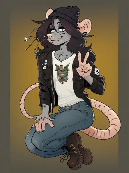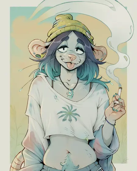 Morgan, 쥐, 회색 털 - 어두운 머리카락을 가진 담배 피우는 펑크, 이 LoRA의 주요 주인공