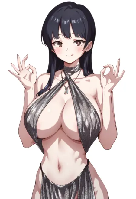 navel,cleavage,covered nipples,stomach,collarbone,plunging neckline,bare shoulders,