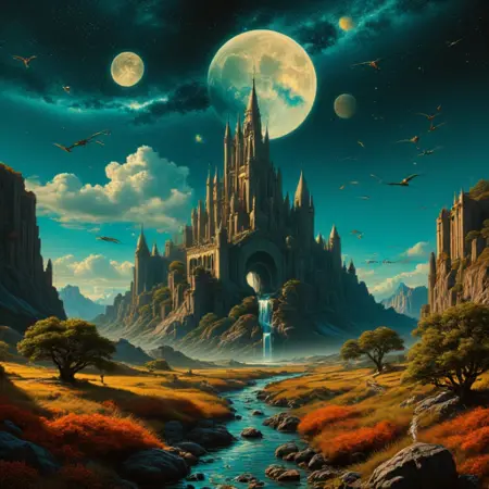 使用关键词 “深度聚焦景观 of” 来解锁此 LoRA 的全部潜力,生成细节丰富、氛围浓厚且带有幽灵般魅力的景观。若希望效果更含蓄但仍保留未来神秘感,可省略关键词,以获得更通用的风格,将黑暗科幻元素与柔和、好奇的色调融合。