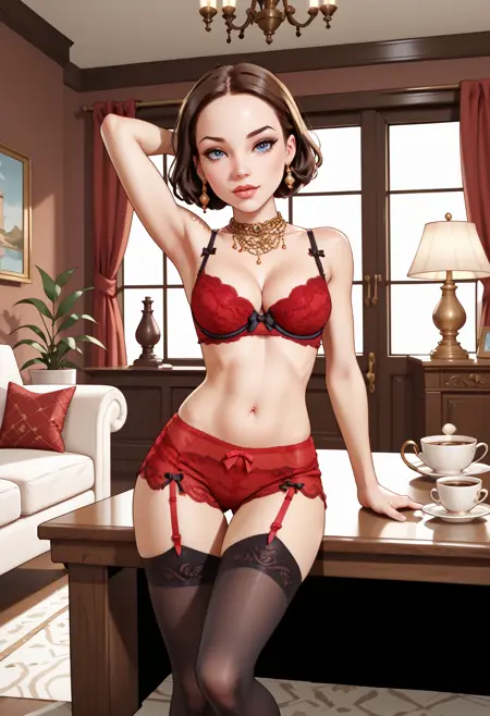 dds_l4c380y5h0r75, red bra, red boyshorts, black trim, garter straps, black thighhighs