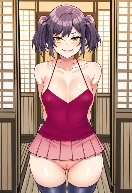プラン・ホワイト: plan_white、ピンクの鋭い目、美しい黒髪、編み込み、結び目バング、髪が目を覆う、前髪、巨大でふわふわした胸、A/美しい長髪;B/美しい長髪、編み込み;C/編み込み、結び目バング、