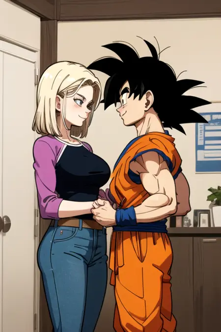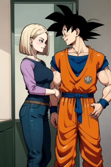 Goku18, hetero, 1boy, 1girl, standing, smile, cowboy shot,