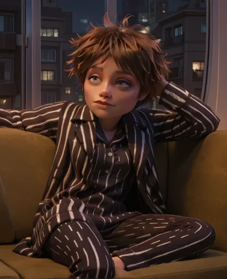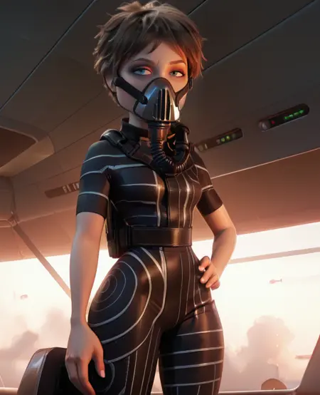 竖条纹连体衣 —— 她曾佩戴 防毒面具,可能需要在 Neg 中加入 胸带和腰带
