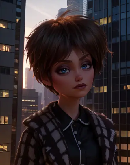 Evelyn,蓝眼睛, 棕色头发,嘴唇或口红,
