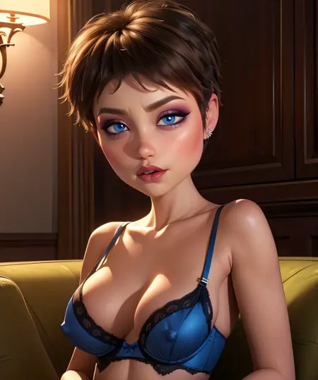 Evelyn,蓝眼睛, 棕色头发,嘴唇或口红,