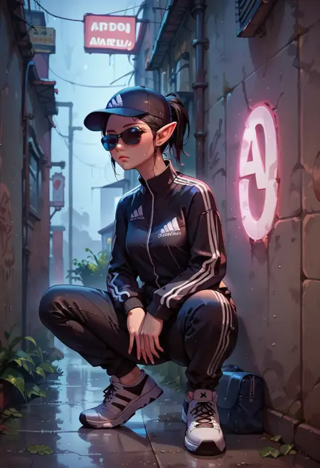 オプション - 背が高く、痩せている — ややより正統的なDOSのエルフの外見にするために。自然と長い首も含まれます(ただし、使用するLoRAや重みによっては失われる可能性があります)