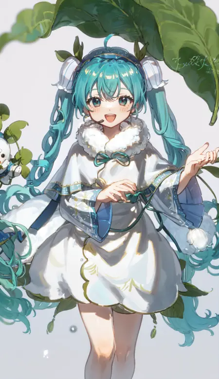 For hair: blue hair, long hair (or very long hair), twintails, blue bow, hair between eyes, bangs, musical note hair ornament, braided bangs, bass clef (it doesn't look good, please understand this)